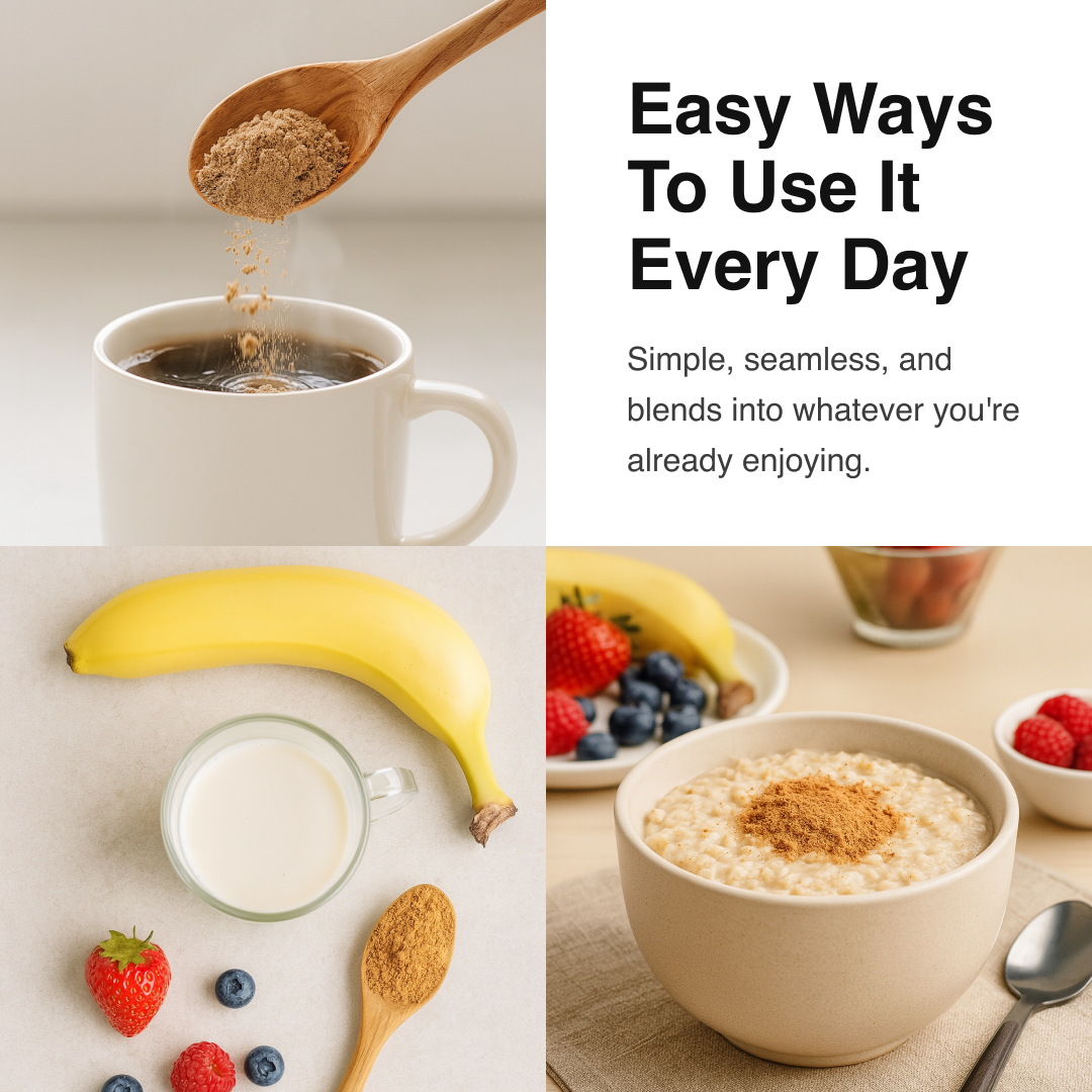 Simply add a serving (2.5g or as you prefer) to your favourite beverage, smoothie, or recipe. Start with a lower dose and adjust based on your own needs.