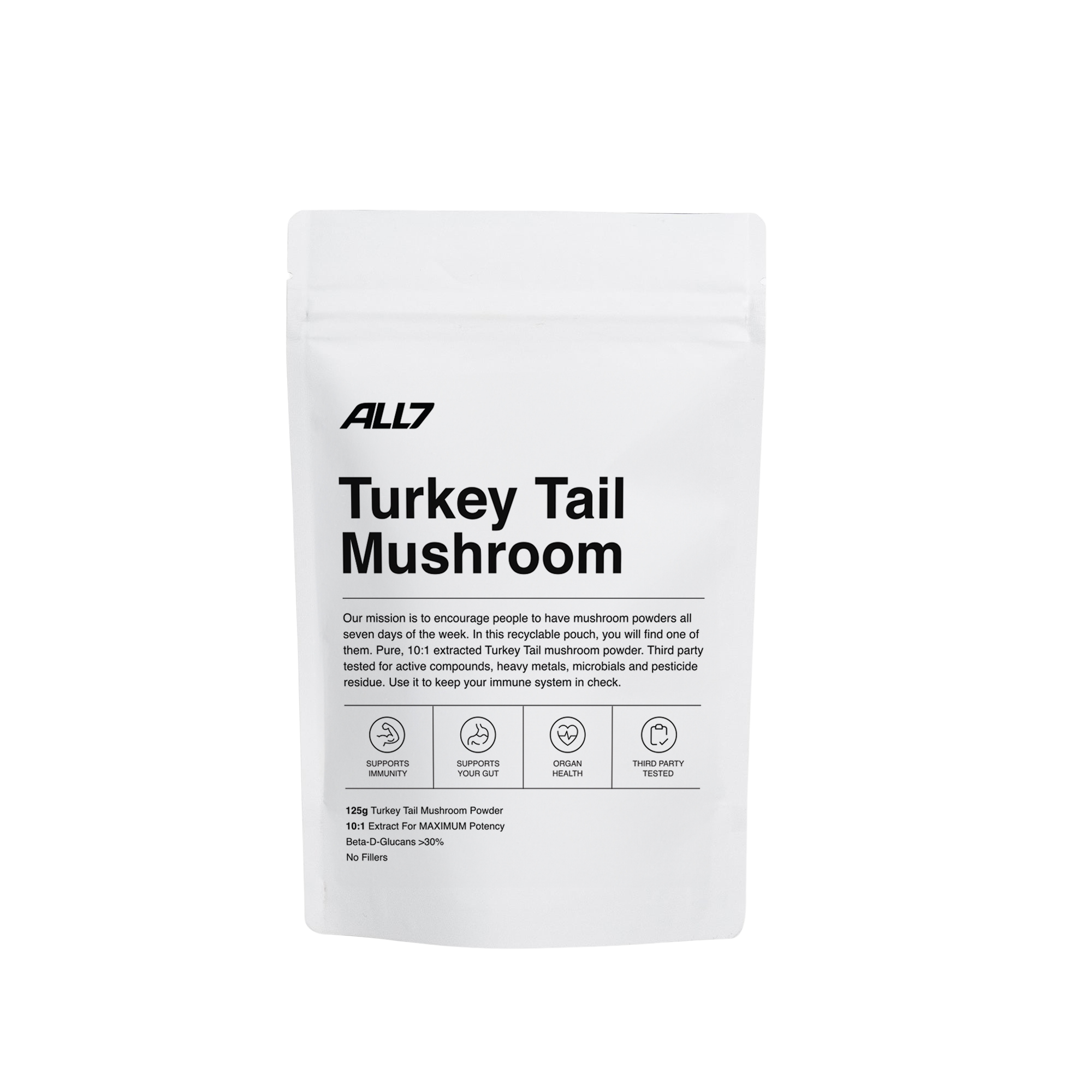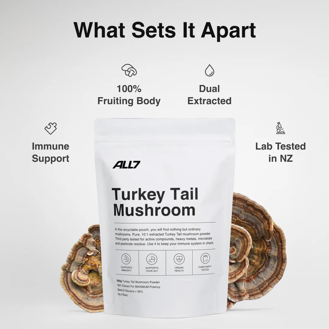 At ALL7, we believe in giving you the best bang for your buck. That’s why our Turkey Tail powder is supplied in bulk 125g and 300g pouches, leaving you the freedom to experiment with dosage the way YOU want.